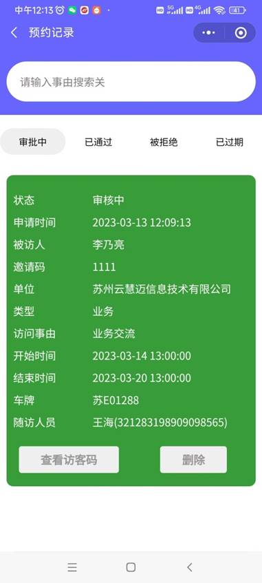 访客系统实现了访客来访快速登记,无需人工手写登记,而且不只是现场登记的便捷,更多的是提前的预约安排,通过访客小程序的预约登记功能,实现访客的提前预约登记,审核,到访可通过刷码核验通行,更加便捷,体验更好。